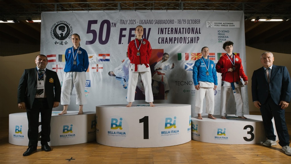 Sportivii de la clubul Wado-Ryu Fudo Shin s-au făcut remarcaţi la cea de-a 50-a ediţie a Campionatului European de Karate Wado Kai, desfăşurat în perioada 18-19 octombrie, în localitatea Lignano Sabbiadoro, Italia. Clubul tulcean, condus de sensei Cornel Hera, a fost prezent la acest campionat cu un număr de 14 sportivi, care au obţinut 19 medalii din totalul de 49 câştigate de lotul României, dintre care două de aur, cinci de argint şi 12 de bronz. De asemenea, clubul tulcean a avut onoarea de a-i avea convocaţi la această competiţie şi pe cei doi arbitri, Florentin Bibică (Referee A) şi Luca Bibică (Judge B). La acest eveniment, organizat sub egida Federation European Wadokai, s-au aliniat la start 760 de sportivi, 95 antrenori şi 40 de arbitri, provenind din 18 ţări europene.