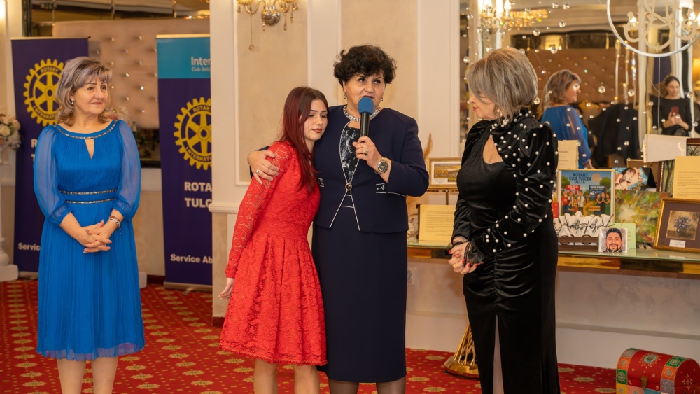„A fost şi Elena prezentă şi ne-am bucurat foarte mult. A fost însoţită de directoarea şcolii unde ea a terminat clasa a VIII-a şi de inspectorul general şcolar cu care noi am colaborat pentru acest caz şi vreau să mulţumesc public pentru lucrul acesta. Tot în cadrul balului, Elena a primit şi o bursă lunară de 1.000 lei, timp de un an de zile de la tatăl unui membru Interact. Noi avem şi tineri în acest club, care fac parte din Interact Tulcea. Deci această sumă a fost donată de familia interactului nostru. Am avut bucuria să-l avem prezent la bal pe guvernatorul Rotary District 2241 România şi Republica Moldova, domnul Andrei Botez, şi toţi oamenii deschişi de bine şi de suflet, care au petrecut momente frumoase, elegante şi cu dăruire”, ne-a spus Andaluzia Luca.