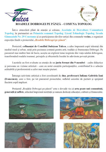 Proiect Topolog ROADELE DOBROGEI PE PÂNZĂ – COMUNA TOPOLOG Posted by Ziarul Delta | Nov 15, 2025 | Anunturi - Comunicate |