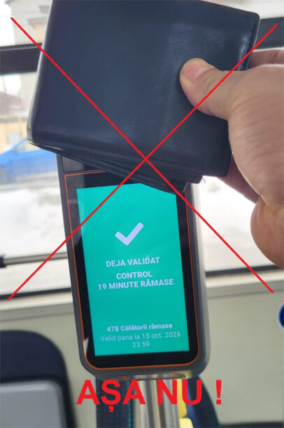 „Pentru a evita unele situaţii neplăcute, invităm călătorii ca, atunci când doresc să valideze călătoria, să nu apropie de validator portofelul (care poate să conţină atât card de transport cât şi card bancar), existând posibilitatea apariţiei taxării duble (simultan de pe cardul de transport şi de pe cardul bancar). Este atât de simplu să călătorim legal! Vă mulţumim pentru încrederea acordată sistemului de transport public”, transmit reprezentanţii Transport Public Tulcea.