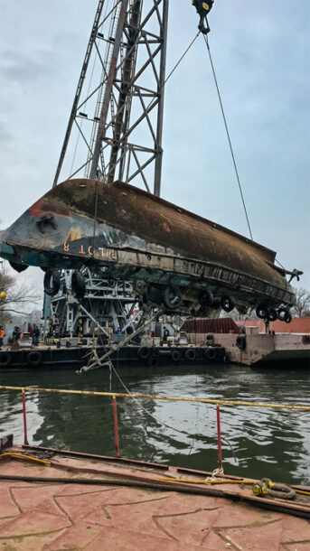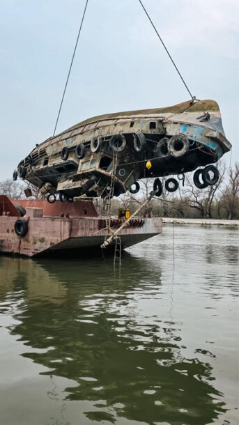 „Alături de echipa de scafandri, au operat echipe de suport logistic dotate cu macara de 100 de tone şi gabară de 500 de tone, resurse esenţiale pentru ridicarea şi transportul epavei în condiţii de maximă siguranţă. Operaţiunea s-a derulat sub directa îndrumare a autorităţilor competente pentru siguranţa navigaţiei, care au supervizat întregul proces şi au validat conformitatea fiecărei etape cu reglementările în vigoare. Această colaborare instituţională a garantat că activităţile de ranfluare nu au pus în pericol nici un moment traficul fluvial şi nu au afectat mediul înconjurător”, ne-a declarat Ilie Jeciu, administratorul Nemo Pro Diving S.R.L.