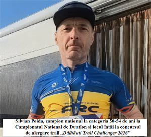 O performanţă remarcabilă a fost obţinută de Silvian Poida, care a obţinut locul întâi şi titlul de campion naţional la categoria 50-54 de ani. Sportivul a participat în următoarea zi la concursul de alergare trail „Dălhăuţi Trail Challenger 2026″ din Vrancea, reuşind şi de această dată să ocupe primul loc pe podium.